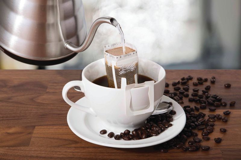 Private label pour over coffee pouch offered by NuZee. The company diversified its suppliers to include more North-American based ones to avoid disruption. Image: NuZee