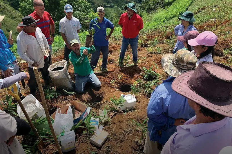 Farmers learn how to replant coffee. Image: ICAFE