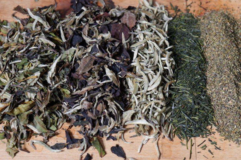 From left to right: China Bai Mu Dan organic, China White, Moonlight Dongzhai organic, China Silver Needles organic, Japan Gyokuro, Sageishi organic.China Bai Mu Dan cut organic. Image: Kloth & Köhnken Tee