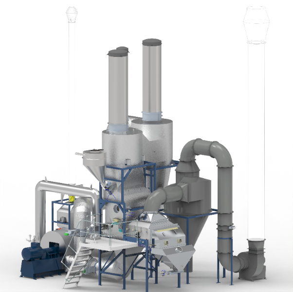 Thanks to the special design, the roasting chamber does not contain any moving elements that could lead to product damage such as abrasion or breakage. Light particles, such as impurities in the raw product, parchment skins, etc. are separated from the clean product by the air flow during roasting and discharged into the collection cyclone without barriers.