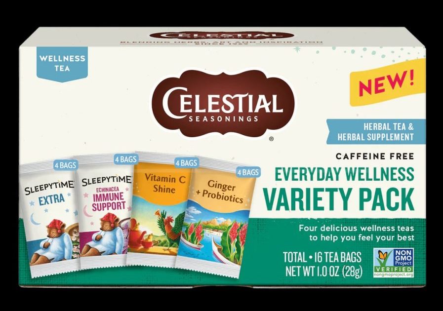 • NEW Everyday Wellness Variety Pack — A cheerful collection crafted for comfort and feel-good sipping. Includes Sleepytime Echinacea Immune Support, Sleepytime Extra, Vitamin C Shine, and Ginger + Probiotics. Available at Target, Walmart and Amazon.