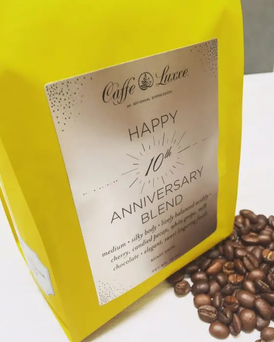 The 10th Anniversary Blend is available beginning today (3 August ) at Caffe Luxxe and online at store.caffeluxxe.com. Free samples will also be offered at all Caffe Luxxe locations starting today.